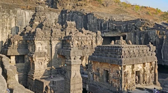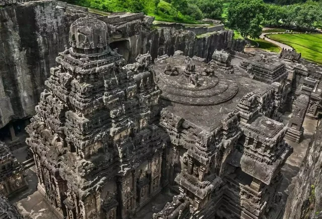 Храм Кайласанатха — один из самых впечатляющих памятников индуистской архитектуры в Индии, расположенный в пещерном комплексе Эллоры (штат Махараштра). Этот храм уникален тем, что он полностью вырезан из цельной скалы, а не построен из отдельных блоков, что делает его настоящим чудом инженерного искусства древности.