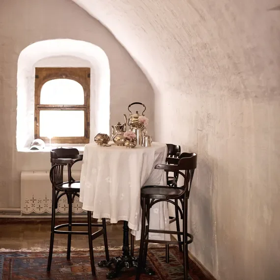 Помещение в старинном здании Хамовной слободы, которое напоминает сцену из классической русской народной сказки. В XVII столетии с этих палат началось формирование московской Хамовной (ткацкой) слободы, и сегодня здание практически полностью сохранило свой первоначальный архитектурный облик. Хотя внутренние интерьеры дошли до нас не в идеальном состоянии, создатели культурного пространства бережно восстановили многие исторические детали.