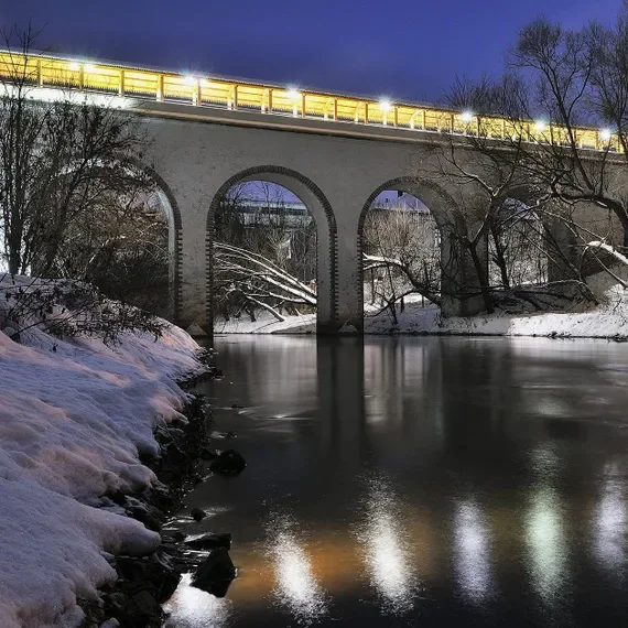Посетить акведук и прогуляться по всему мосту можно в праздничные дни и выходные. После прогулки рекомендуем взять стакан горячего глинтвейна в уютном киоске и отправиться на бесплатный каток или на снежный склон, чтобы покататься на ватрушках и санках. Аренда тюбинга обойдется в 300 ₽ за час.