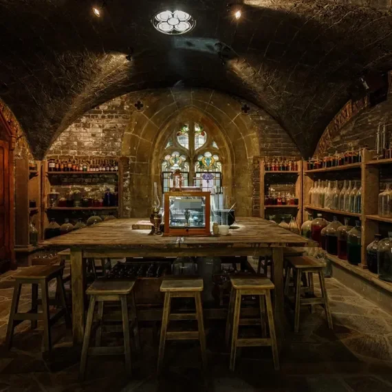 «Тайная комната» разделена на несколько тематических зон. Одна из них переносит гостей в атмосферу сказочного Шира: здесь установлен массивный витраж из лондонской церкви Святого Иоанна, старинные церковные скамьи, винтажные предметы с блошиных рынков, антикварные бочки с ирландской винокурни и подлинный орган.