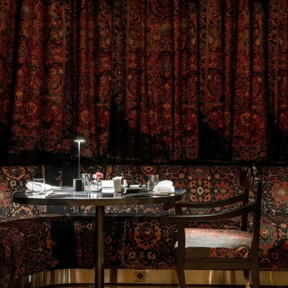 Дизайн заведения вдохновлен сказками Пушкина и работами Густава Климта: от первого взята морская тематика из «Сказки о царе Салтане», от второго — изысканные фрески с романтичными женскими образами и декоративные узоры на стенах. В меню представлены дорогие деликатесы: морепродукты, тартары, французские супы и изысканные коктейли.