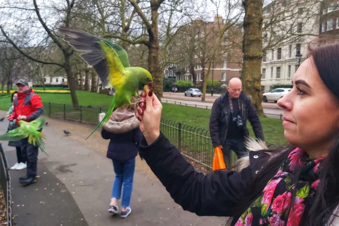 Лондон славится значительной популяцией индийских кольчатых попугаев, также известных как ожереловые попугаи. Эти ярко-зелёные птицы когда-то сбежали из клеток и отлично адаптировались к жизни в городских парках, превратившись в одну из уникальных достопримечательностей столицы.
