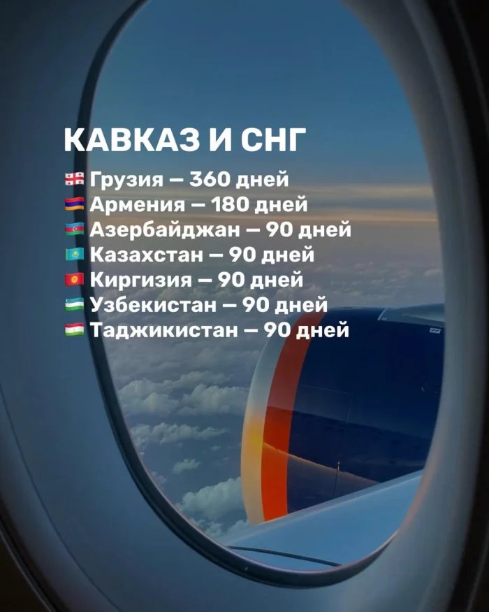 Кавказ и страны СНГ остаются самыми простыми направлениями. Грузия разрешает пребывание до 360 дней, Армения — до 180 дней, Азербайджан, Казахстан, Киргизия, Узбекистан и Таджикистан — до 90 дней. Эти страны особенно удобны для длительного проживания и релокации.