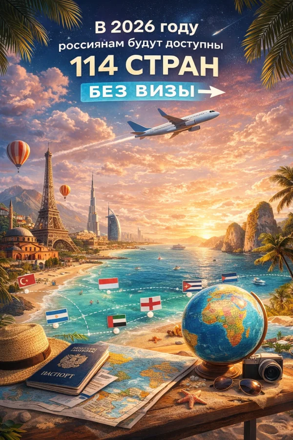 Многие до сих пор уверены, что с российским паспортом путешествовать сложно. Но реальность совсем другая. В 2026 году россиянам доступны 114 стран без визы либо с максимально упрощённым въездом — электронная виза или оформление по прилёту. География направлений охватывает практически весь мир: от Азии и Африки до Америки и Океании.