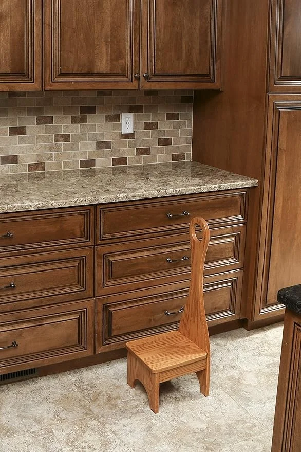 Старинный стул-стремянка оснащён удобной ручкой, что позволяет без труда перемещать его в любое необходимое место, не прилагая особых усилий и не наклоняясь.