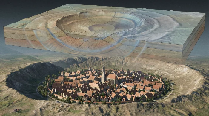Примерно 14,8 миллиона лет назад территория нынешней Германии стала эпицентром грандиозного катаклизма. Космическое тело размером порядка километра столкнулось с поверхностью Земли. Мощность удара оказалась колоссальной — в месте столкновения температура превысила 20 тысяч градусов, а давление подскочило до 60 гигапаскалей.