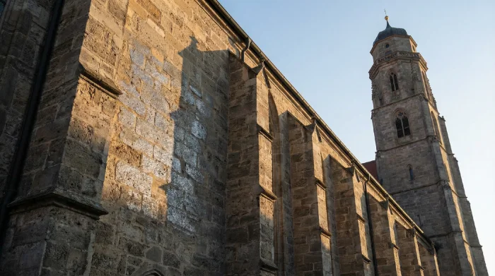 Жить в историческом городе из суевита обходится недёшево. Нёрдлинген — объект UNESCO Global Geopark. Любой ремонт требует согласования с органами охраны памятников. Нельзя использовать современный цемент — нужна известь, подобранная по составу оригинальной кладки. Нельзя ставить пластиковые окна — только деревянные, в историческом стиле.