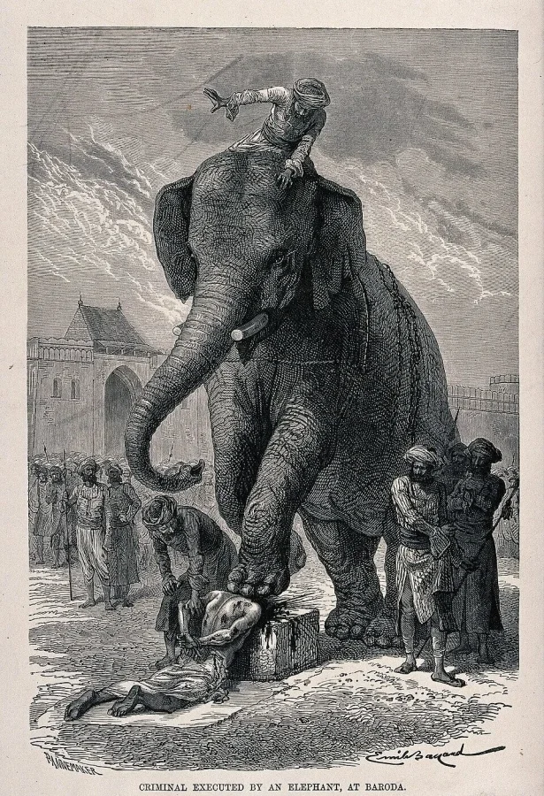 Наказание с использованием слона (также именуемое "гунга-рао" в Индии) являлось одной из распространённых практик казни в прошлом. Данный метод активно применялся в различных государствах Азии. В частности, в Индии слоны служили инструментом для осуществления публичных казней и пыток над преступниками.