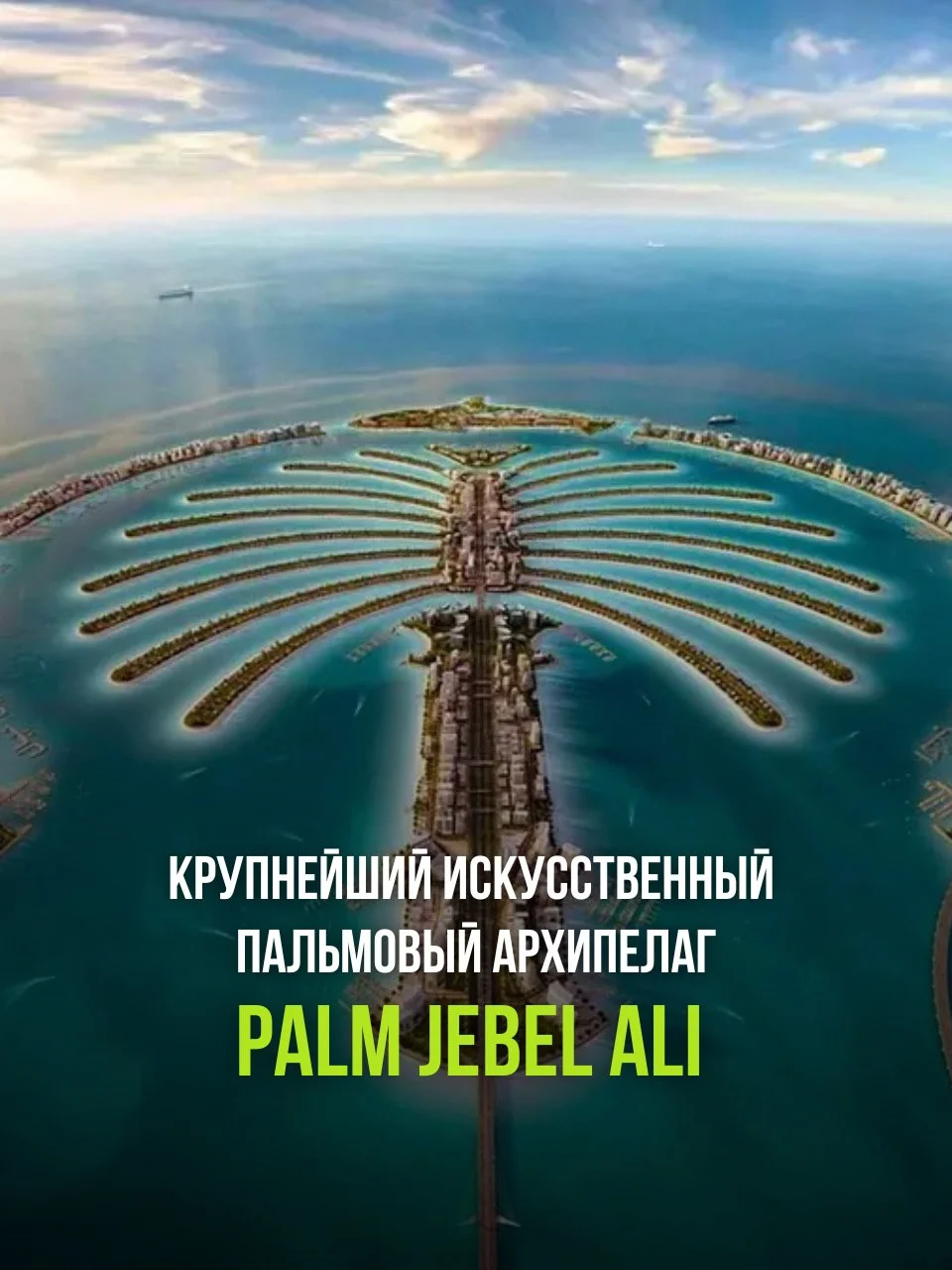 Palm Jebel Ali — крупнейший искусственный пальмовый архипелаг в мире. Этот масштабный проект значительно превосходит по размеру знаменитую Palm Jumeirah. Архипелаг создается с расчетом на десятки тысяч жителей и туристов и символизирует стремление Дубая расширять границы возможного даже в вопросах освоения моря.