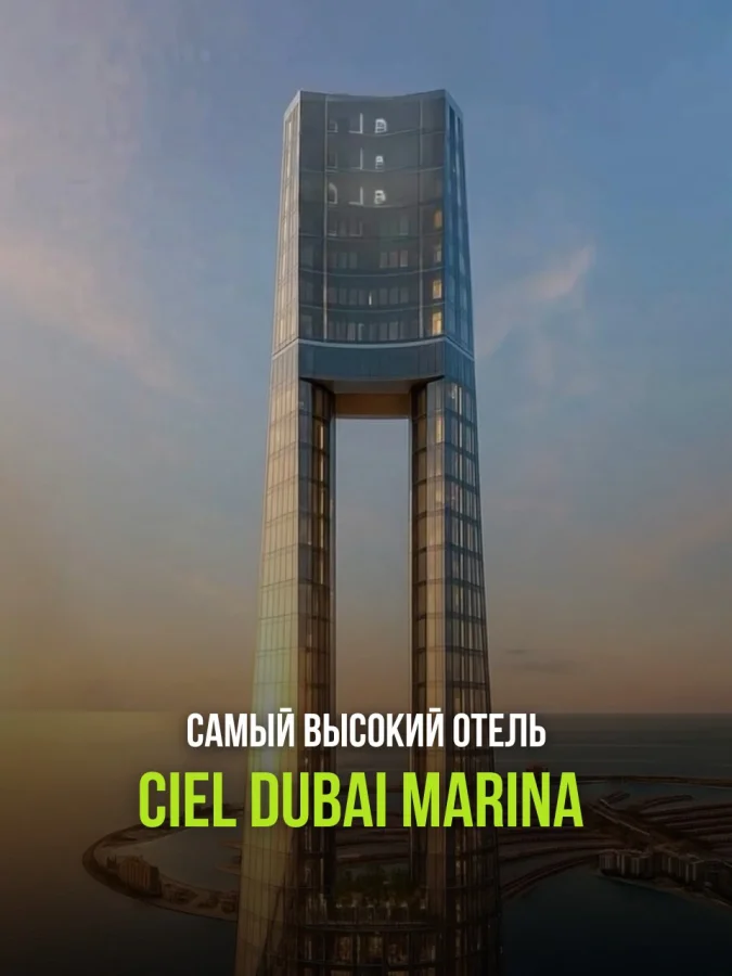 Ciel Dubai Marina спроектирован как ультрасовременный небоскрёб с панорамным остеклением, откуда открываются виды на Персидский залив, искусственные острова и городские кварталы. Внутри расположены сотни номеров премиум-класса, рестораны, лаунж-зоны и один из самых высоко расположенных инфинити-бассейнов в мире. Особое внимание уделено дизайну интерьеров — он сочетает футуризм, минимализм и элементы арабской эстетики.