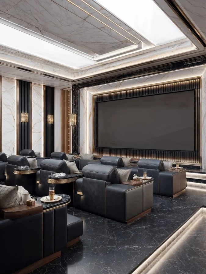 Для любителей кино предусмотрен частный кинотеатр, вдохновлённый античной Грецией. Огромный экран уровня IMAX, индивидуальные VIP-кресла с персональными столиками и идеальная акустика делают просмотр фильмов сопоставимым с лучшими кинозалами мира — но без посторонних глаз.