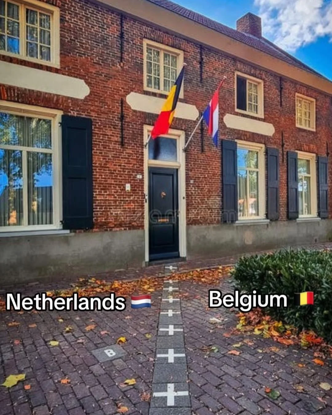 Совсем иначе выглядит граница между Нидерландами и Бельгией. В некоторых городах она проходит буквально через дома и дворы, а обозначена лишь линиями на мостовой и флагами. Жители по обе стороны границы живут практически одной жизнью, свободно перемещаясь между странами.