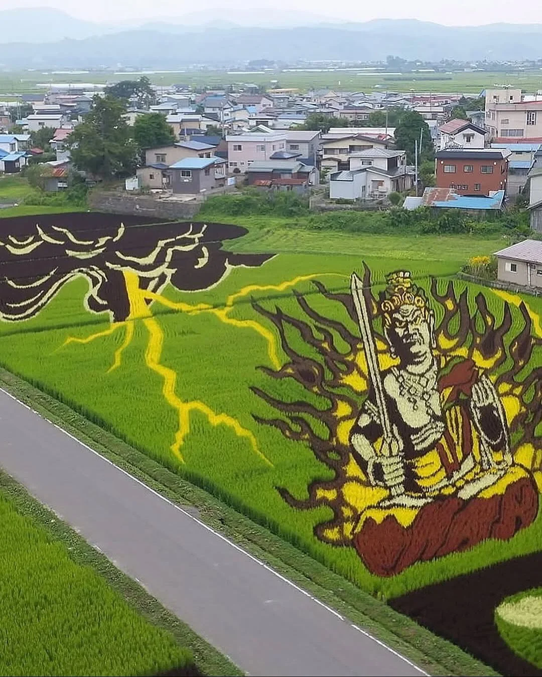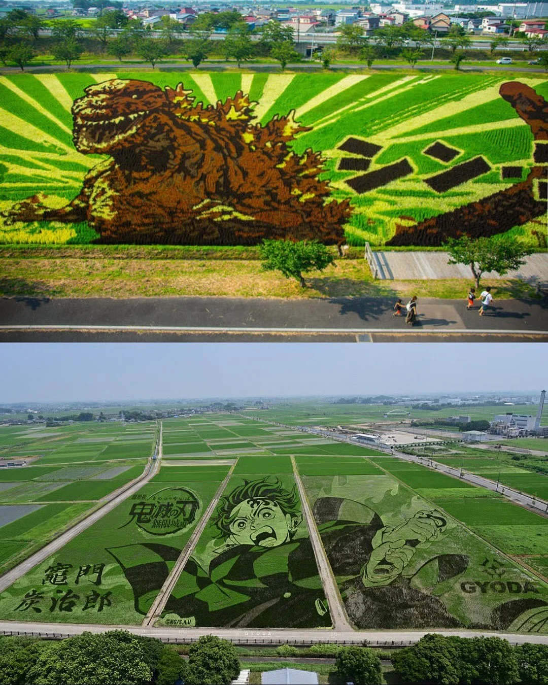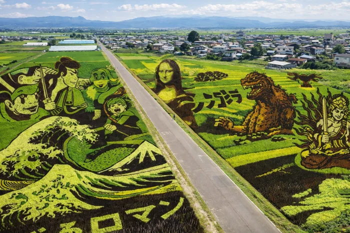 В Японии даже сельское хозяйство может выглядеть как музей под открытым небом. В некоторых регионах страны фермеры каждый год превращают обычные рисовые поля в гигантские картины, которые лучше всего рассматривать с высоты. Этот необычный вид лэнд-арта получил название «танбо-арт» — искусство рисовых полей.