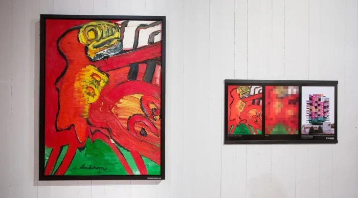 Цветовое решение фасада выбрано неслучайно: это пиксельная версия картины «Женский танец» местного художника Бенгта Линдстрёма.