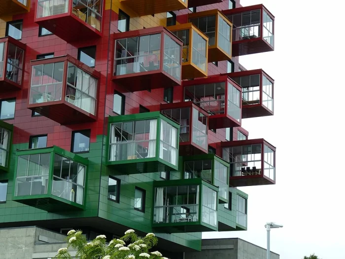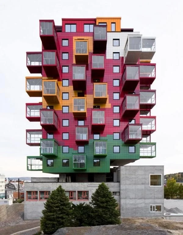 Автор проекта, известный шведский архитектор Герт Вингорд, создал не просто жилое здание. Его 11-этажная конструкция впечатляет 78 стеклянными балконами, которые предлагают завораживающие виды на живописные скалы и знаменитые лыжные трамплины.