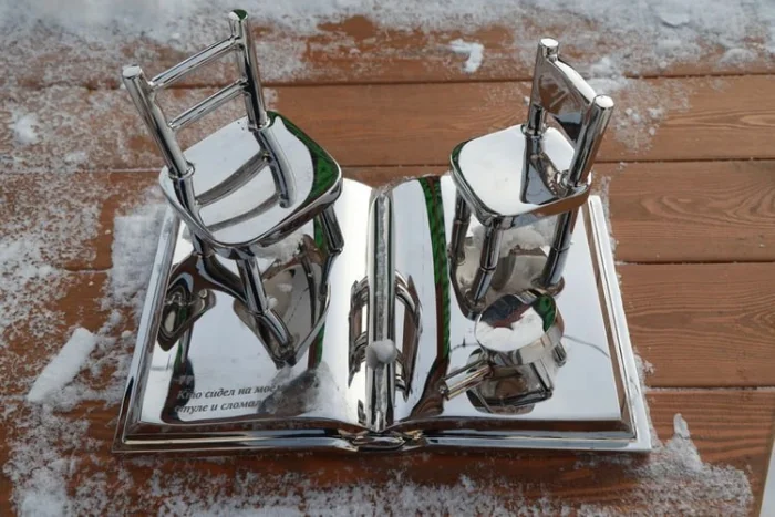 Особенно эффектно стальные скульптуры смотрятся зимой: блестящий металл отражает снег и небо, создавая ощущение, будто страницы книг ожили в морозном воздухе.