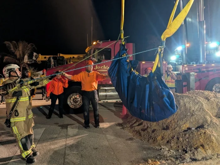 В рамках масштабной спасательной операции для извлечения ламантина были привлечены несколько пожарных отрядов и специализированная техника — включая автотранспортный эвакуатор.