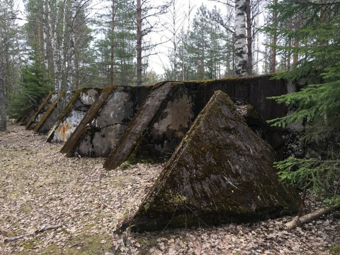 Но есть место, где часть этой оборонительной линии можно увидеть практически прямо с дороги. На Приморском шоссе, примерно в десяти километрах от города Приморск, рядом с посёлком Ермилово, среди леса выстроились ряды гранитных валунов. Камни покрыты мхом и почти слились с природой, но их происхождение легко узнать — это знаменитые противотанковые надолбы, которые часто называют «зубами дракона».