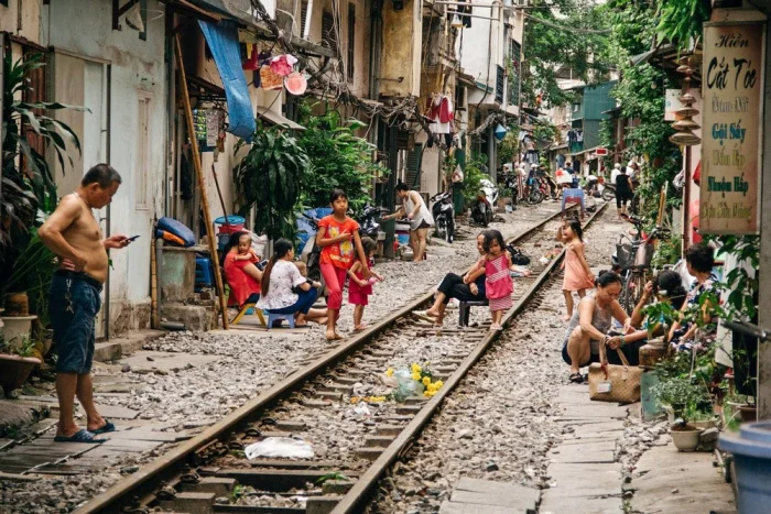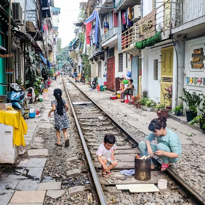 В Ханое есть жилая улица, через которую проходят железнодорожные пути. Днём здесь идёт обычная жизнь: жители готовят еду, дети играют, по дороге гуляют домашние животные.