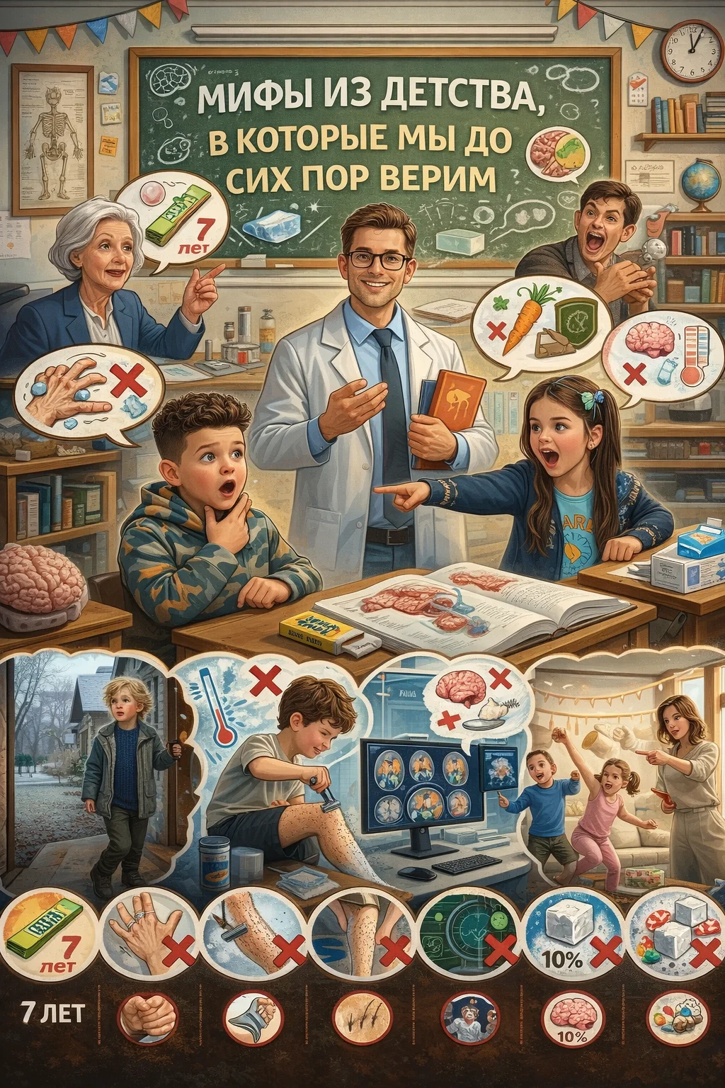 Практически у каждого человека есть набор «истин», которые он усвоил ещё в детстве. Родители, учителя и окружающие часто повторяли одни и те же утверждения, не задумываясь, насколько они соответствуют реальности. И самое интересное — многие из этих мифов до сих пор живут в наших головах.