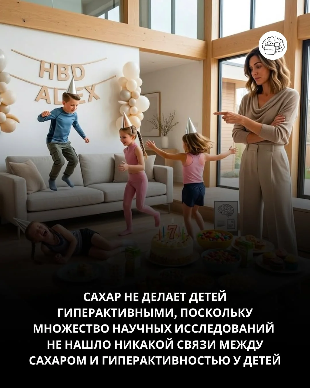 Но многочисленные исследования показали, что прямой связи между потреблением сахара и гиперактивным поведением нет. Часто эффект объясняется ожиданиями взрослых или возбуждённой атмосферой, например на праздниках.