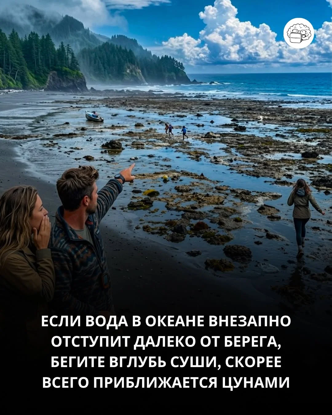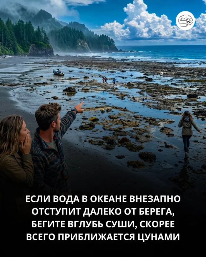 Если вода в океане резко отступает далеко от берега — это один из главных признаков надвигающегося цунами. У вас есть всего несколько минут, чтобы спастись. Нужно срочно уходить как можно дальше от берега и подниматься на возвышенность.