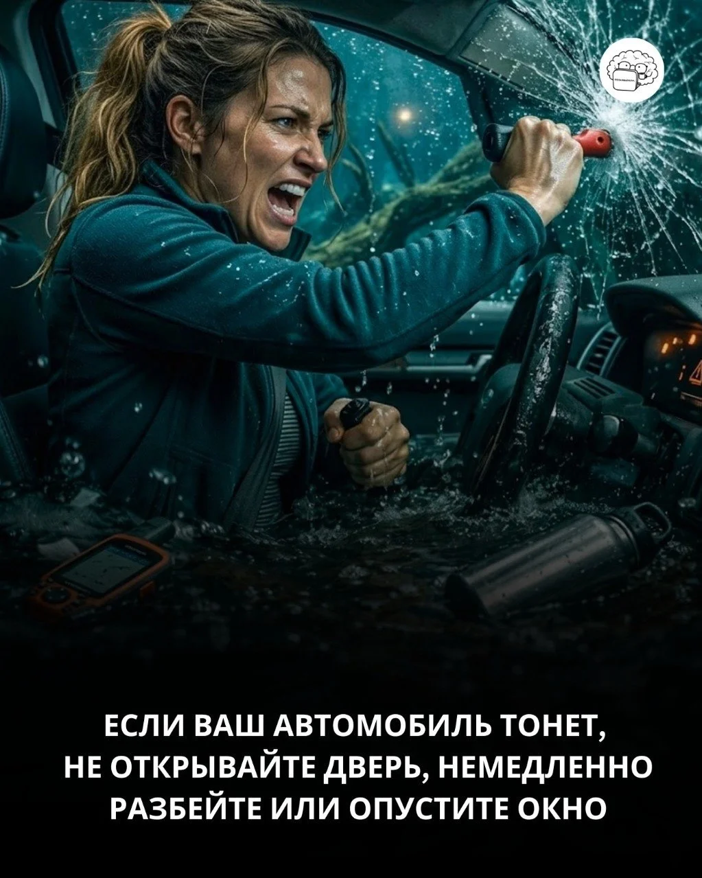 Если автомобиль оказался в воде, не стоит пытаться сразу открыть дверь — давление воды не даст этого сделать. Нужно разбить стекло или открыть окно, пока машина не полностью ушла под воду.