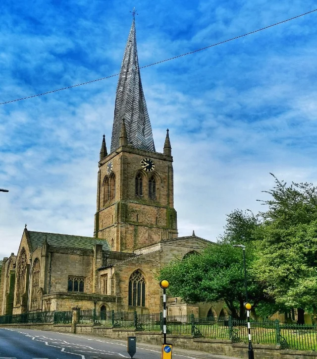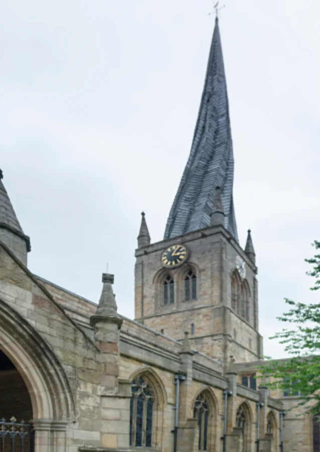 В английском городе Честерфилд находится англиканская церковь, прославившаяся своим необычным шпилем, который заметно искривлён и словно закручен вокруг собственной оси.