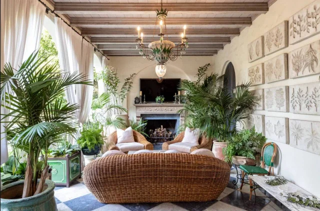 Внутри сохранился винтажный интерьер, а домашний кинотеатр украшен автографами знаменитостей, включая Элвиса Пресли и Натали Вуд — традиция, заложенная предыдущим владельцем. Супруги купили дом в 2015 году примерно за $11,85 млн, а ранее попытки его продажи предпринимались ещё в 2022 году.