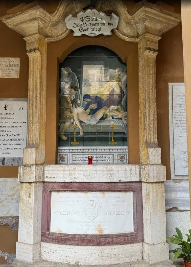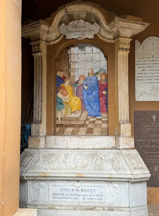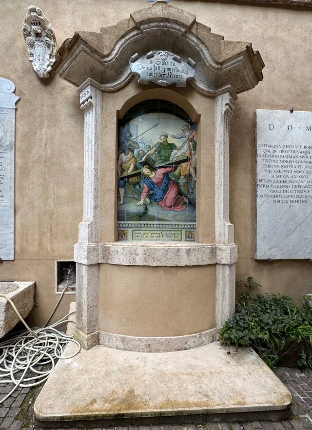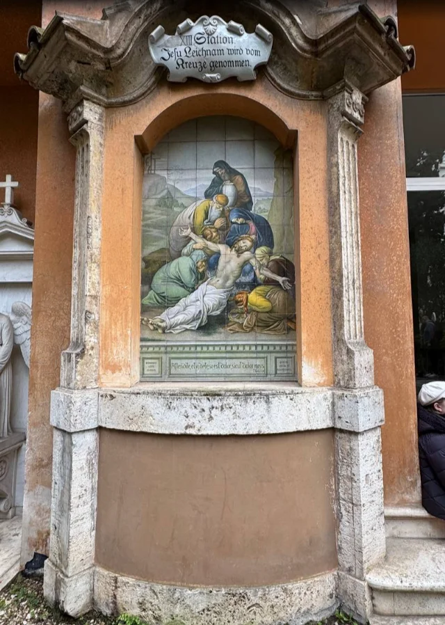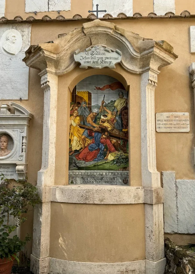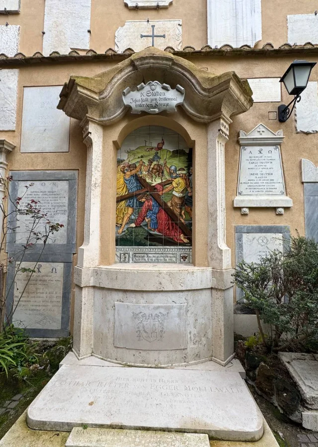 На территории Тевтонского кладбища расположена уникальная серия из 14 художественных сцен, посвящённых Страстям Христовым — от суда над Иисусом до распятия и погребения. Композиции выстроены в хронологическом порядке и читаются против часовой стрелки, формируя единый драматический цикл.