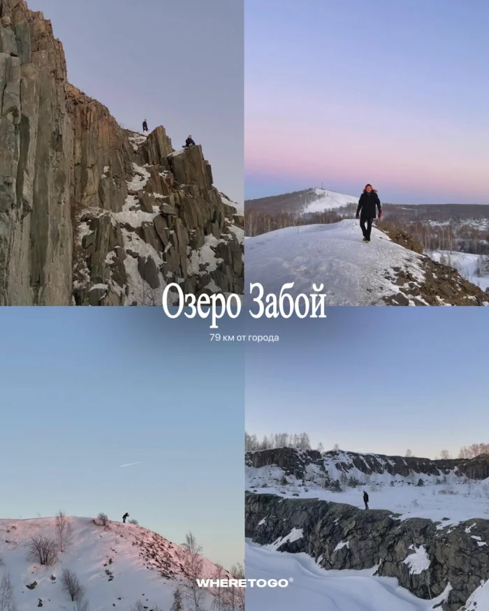 Карьер с отвесными скалами, который зимой выглядит особенно сурово и кинематографично.