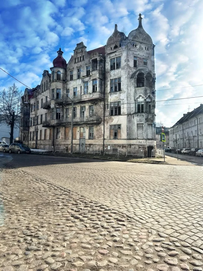 С тех пор он пустует. Окна выбиты, стены разрушаются, но силуэт с башенкой всё ещё держится — как напоминание о старом Тильзите, который когда-то был частью европейской архитектурной традиции.