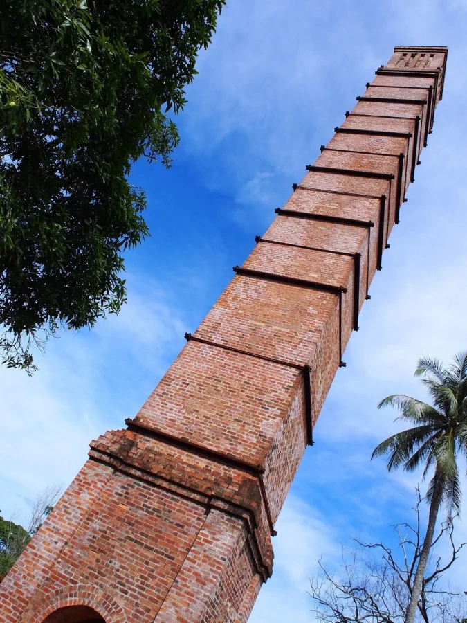 На северной возвышенности острова Лабуан, расположенного у побережья Восточной Малайзии, возвышается 30-метровая труба, выложенная из красного кирпича.