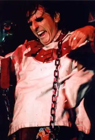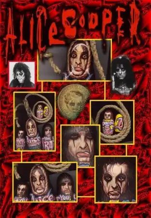 Вместе со своими школьными друзьями они организовали группу. Им было по 16, они не умели играть на инструментах, но это был их первый шаг на пути рок-н-ролла. Звали этих парней так: Винсент Фурнье, Гленн Бакстон, Деннис Данауэй,Джон Спир и Джон Татум. Затем группа переименовалась в SPIDERS, в состав которой входил уже Майкл Брюс, заменивший Джона Татума. Они уже умели играть и записали два первых сингла, один из которых “Don't Blow Your Mind” [трек №1 на бокссете The Life And Crimes Of Alice Cooper] имел огромный успех в Фениксе. На волне этого успеха группа переименовалась в NAZZ и стала готовить себя к Голливуду, в окрестностях которого они вскоре поселились. На этом этапе Джона Спира сменил Нейл Смит. Вскоре к ним присоединился Тод Рундгрен. В то время ребята были готовы и у них был потенциал для демонстрации Америке своего Рок-Н-Ролла. Это был 1968 год. Для выхода в большой музыкальный мир группе требовалось новое громкое имя. Существует множество историй возникновения нового названия. Лично мне [автору этой статьи] больше всего нравилась версия со спиритическим сеансом, на котором появился дух Алисы Купер [история которой будет рассказана чуть позже], но прочитав книгу об Элисе Купере из бокссета Life And Crimes … я выяснил, что по словам самого Элиса дело было так: Как-то одной поздней ночью группа зашла в гости к мэнеджеру Дику Филлипсу (ака Дику Кристиану). Встал вопрос о новом названии. Ребята со смехом приняли идею матери Дика подобрать имя с помощью доски Оуйа{Ouija} для чтения. Однако смех немного приутих, когда дико прыгающая стрелка выбрала последовательно буквы A-L-I-C-E-C-O-O-P-E-R. Причин для смеха было очень мало, так как по легендам столетней давности Алиса Купер – молодая женщина, заживо сожженная на костре по обвинению в связи с дьяволом [короче - Ведьма]. Ребята не растерялись и развили эту легенду: Винсент – реинкарнация этой женщины. Так появилась на свет новая группа под названием ALICE COOPER. Имидж группы изменился в соответствии с легендой. Музыкальный стиль изменился к сатирическому поп-року. Первые два альбома Pretties For You (1969), Easy Action (1970) не принесли группе особого успеха, хотя продюссировал их такой гигант музыкальной индустрии как Фрэнк Заппа. Надо заметить, что после первого альбома группа переехала в родной город Винсента – Детройт. Тем временем на группу обратил внимание Боб Эзрин, известный по работе с такими “монстрами”, как Пинк Флойд. Он спродюсировал их следующий альбом “Love It To Death” (1971), который получил статус платинового. Да, это действительно был прорыв. Хит “I’m Eighteen” держался в чартах долгое время. Следующий альбом “Killer” вышел в конце того же года и был выдержан в том же стиле. Именно с этого момента стиль группы стал носить название Шок-Рок. Следующий сингл “Schools Out” (1972) с одноименного альбома принес группе просто ошеломляющий успех и популярность по обе стороны Атлантики. На волне этого успеха группа записала следующий альбом “Billion Dollars Babies” (1973), успех которого превосходил все предыдущие. От этой радости группа рассталась с Элисом и взяла себе название последнего альбома. После этого момента группа ничего толкового не создала и вскоре распалась, а Элис Купер стал полноправным владельцем своего имени и начал сольную карьеру. Состав менялся, но Элис Купер оставался и забирал все лавры побед себе, завоевав тем самым себе титул короля ужасов. А ужасы о