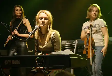 Внушительных размеров ансамбль из Украины, ведомый двумя вокалистками, поочередно выходящими на первый план, играет пронзительные песни для тех, кто смотрит "Парфюмера", читает "Алхимика" и помнит, что готика не сводится к густому мейкапу и образу Вилле Вало, - музыка не для студентов-хиппи, а для тех, в кого они выросли. От фолка здесь остались только отдельные очертания, и происхождение музыкантов не выдается уж точно никак - славянские элементы распознать будет затруднительно. Важнее всего здесь мрачная романтика, не без суицидального подтекста, плюс общее впечатление эскапизма, ухода в некую смежную реальность. (с) Иван Чернявский, Play