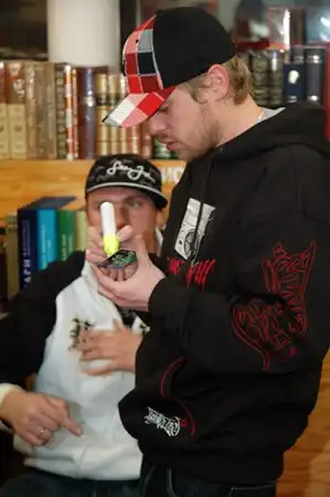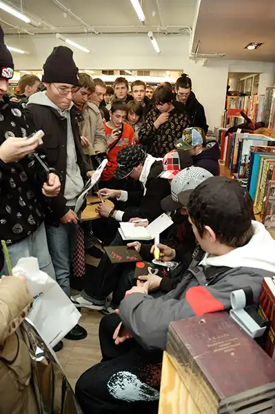 Автограф-сессия проходила в обычном торговом зале магазина "Республика". Заходишь за новой книжкой, компакт-диском или просто кофе выпить - а там Каста. Точнее саму группу не разглядеть, ее взяли в плотное кольцо. Хамиль, Змей, Шым и Влади не покладая рук водят фломастерами по свежевыпущенным дискам. На DVD - отчет Касты перед слушателями за десять лет существования: все клипы, лучшие фотографии и специальные проекты - концерт с оркестром и документальный фильм. Полный фарш, что называется.