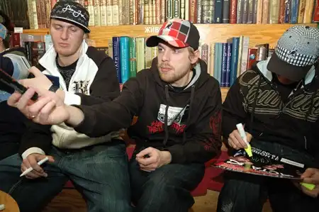 Нечасто артисты могут рассмотреть своих поклонников во всей красе. Не в клубном полумраке, где лица сливаются неразличимо, а вот так, при свете если не солнца, то ламп дневного света. Да и самим гостям мероприятия, как показалось, с Кастой было интересно. "Я только что говорил с ними!" - делился с телефонным собеседником молодой человек довольно серьезной наружности, не позволявшей ожидать от него подобной восторженности.