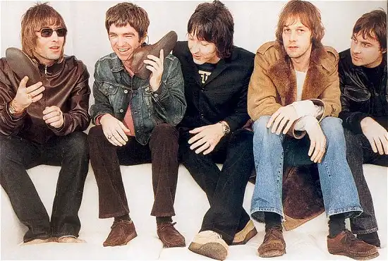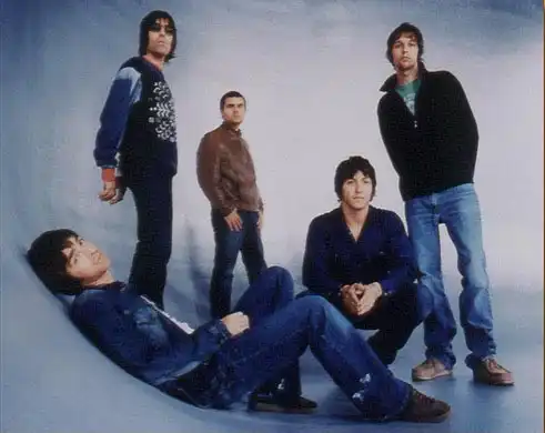 Первоначальный состав Oasis, 1991—1995: Пол «Гигси» МакГиган, Пол «Боунхэд» Артурс, Ноэл Галлахер, Лиам Галлахер и Тони МакКэролл