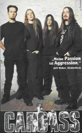 Вот тогда, в 1993 году в музыкальной картинке квартета появляется интеллигентность, которая тесно и гармонично сплела воедино все характерные особенности прежнего творчества Carcass, всю их извращённую гениальность, тяжесть, heavy-metal традиции и современные тенденции в death-metal. Содержание альбома “Heartwork”(93) пряталось уже не за картинками с гниющей плотью, а за скульптурным кавером H.R.Giger и представляло собой новый камень преткновения в истории экстремальной музыки. Тексты вдруг стали отражать доселе неведомые в творчестве ливерпульских мясорубов темы, как война, религия и технологизация людей. Запевала Джефф на эту тему: «Лирика нынче у нас более сфокусирована. Это в некотором роде бултыхание в трупах, но с большой примесью реальности. Пусть это прозвучит грандиозно и претенциозно, но тексты – об очеловеченности жизни и смерти. Господи, я не хотел так выразиться!» Любая песня “Heartwork” – хоть открывающая “Buried Dreams”, хоть шедевральная “Heartwork” или альянс death-metal и британского heavy “This Mortal Coil”- была достойна покупки целого альбома без боязни быть разочарованным качеством игры, супер-звуком, злобно-весёлой скоростью, усложнившейся ритм-секцией, эффектными гитарными хуками, потрясающими мелодиями и утончёнными соляками. Диск достиг 54 места в британском национальном чарте альбомов и продался тиражом более 300 тысяч, что уже само по себе свидетельствовало об успехах ТАКОГО неоднозначного коллектива. Все были довольны. Все, кроме Майка Эмотта. Конечное содержание “Heartwork” его не устроило, и он покидает ряды Carcass, чтобы 3 года спустя делать очень похожую музыку вместе со своим младшим братом Кристофером в группе Arch Enemy. В новом обширном турне Эмотта заменяет бывший техник Mike Hickey, а в последующей студийной деятельности - Carlo Regadas. Чтобы обозначить уход шведского гитариста и подписание дистрибутивного контракта с мэйджором Columbia, группа записывает две новых песни “This Is Your Life” и “Rot’n’Roll”(6 баллов из 5 возможных!) для мини-альбома “Heartwork”(94). Уже в компактном формате, с переходным, более сухим и резким блюзовым звуком и в не очень далеко идущей новой rock-star-манере.