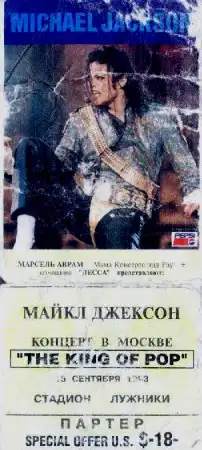 Билет на первый концерт Майкла Джексона в Москве 15 сентября 1993 г.
