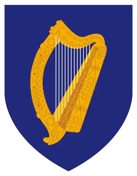 Герб Ирландии представляет собой золотую арфу с серебряными струнами на синем щите. Арфа долгое время была геральдическим символом Ирландии. В современном виде герб утверждён 9 ноября 1945 года.