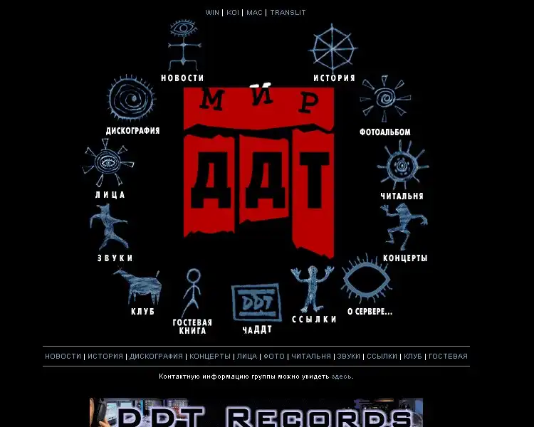 Однажды летом 1980 года Юрий Шевчук, дипломированный художник и поэт-самоучка, встретил четырех молодых людей… Так и началась группа «ДДТ», ставшая кошмаром для КГБ, «партейцев» и иже с ними, но в то же время ставшая одной из самых популярных групп в истории как советского, так и российского рока. По одной из версий название группы, несмотря на свою ядовитость, первоначально было весьма безобидно и расшифровывалось как «Дом детского творчества» — первое пристанище коллектива. Первыми музыкантами группы были Рустам Асанбаев, Геннадий Родин, Владимир Сигачев и Рустам Каримов. В дальнейшем группа не раз меняла состав, места проживания и отношения с «верхами», но ее гражданская позиция всегда оставалась неизменной. Как говорит сам Юрий Шевчук, группа никогда не была политической, но всегда оставалась верна своему гражданскому долгу.