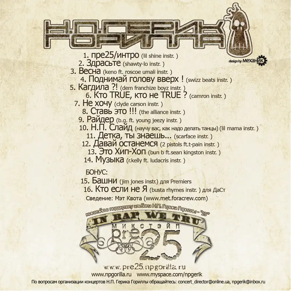 В день моего 26-ти летия, я и моя команда (Рома Белый, Флэйва, Мэт Квота, Миша Механик) выкладываем в сеть для свободного скачивания НОВЫЙ преальбомный микстэйп "пре25".