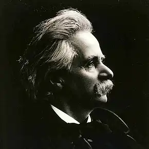 В эти годы появляются и первые сочинения Грига, окрашенные своеобразным национальным колоритом, - мелкие фортепьянные пьесы, соната для фортепьяно, 1-я скрипичная соната, увертюра для оркестра "Осенью". В 1867-1874 годах Григ был дирижером Филармонического общества в Христиании. Наряду с произведениями скандинавских композиторов он знакомил слушателей с творчеством Шумана, Листа, Вагнера. В 1871 году совместно с композитором И. Свенсеном Григ основал музыкальное общество, пропагандировавшее симфоническую музыку и сыгравшее значительную роль в культурной жизни Норвегии. С 1880 года жил в своем родном городе Бергене; здесь он возглавлял музыкальное общество "Гармония". В 1888 году в Лейпциге произошло знакомство Грига с Чайковским, перешедшее в дружеские отношения. В 1893 году он одновременно с Чайковским, Сен-Сансом, Бойто и Брухом получил почетную степень доктора музыки Кембриджского университета. Интенсивную композиторскую деятельность Григ совмещал с гастрольными поездками в города Франции, Германии, Англии (в 1899 году он отказался выступать в Париже в знак протеста против дела Дрейфуса).
