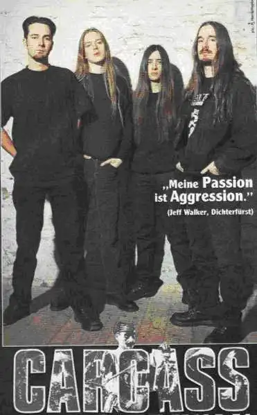 Вот тогда, в 1993 году в музыкальной картинке квартета появляется интеллигентность, которая тесно и гармонично сплела воедино все характерные особенности прежнего творчества Carcass, всю их извращённую гениальность, тяжесть, heavy-metal традиции и современные тенденции в death-metal. Содержание альбома “Heartwork”(93) пряталось уже не за картинками с гниющей плотью, а за скульптурным кавером H.R.Giger и представляло собой новый камень преткновения в истории экстремальной музыки. Тексты вдруг стали отражать доселе неведомые в творчестве ливерпульских мясорубов темы, как война, религия и технологизация людей. Запевала Джефф на эту тему: «Лирика нынче у нас более сфокусирована. Это в некотором роде бултыхание в трупах, но с большой примесью реальности. Пусть это прозвучит грандиозно и претенциозно, но тексты – об очеловеченности жизни и смерти. Господи, я не хотел так выразиться!» Любая песня “Heartwork” – хоть открывающая “Buried Dreams”, хоть шедевральная “Heartwork” или альянс death-metal и британского heavy “This Mortal Coil”- была достойна покупки целого альбома без боязни быть разочарованным качеством игры, супер-звуком, злобно-весёлой скоростью, усложнившейся ритм-секцией, эффектными гитарными хуками, потрясающими мелодиями и утончёнными соляками. Диск достиг 54 места в британском национальном чарте альбомов и продался тиражом более 300 тысяч, что уже само по себе свидетельствовало об успехах ТАКОГО неоднозначного коллектива. Все были довольны. Все, кроме Майка Эмотта. Конечное содержание “Heartwork” его не устроило, и он покидает ряды Carcass, чтобы 3 года спустя делать очень похожую музыку вместе со своим младшим братом Кристофером в группе Arch Enemy. В новом обширном турне Эмотта заменяет бывший техник Mike Hickey, а в последующей студийной деятельности - Carlo Regadas. Чтобы обозначить уход шведского гитариста и подписание дистрибутивного контракта с мэйджором Columbia, группа записывает две новых песни “This Is Your Life” и “Rot’n’Roll”(6 баллов из 5 возможных!) для мини-альбома “Heartwork”(94). Уже в компактном формате, с переходным, более сухим и резким блюзовым звуком и в не очень далеко идущей новой rock-star-манере.