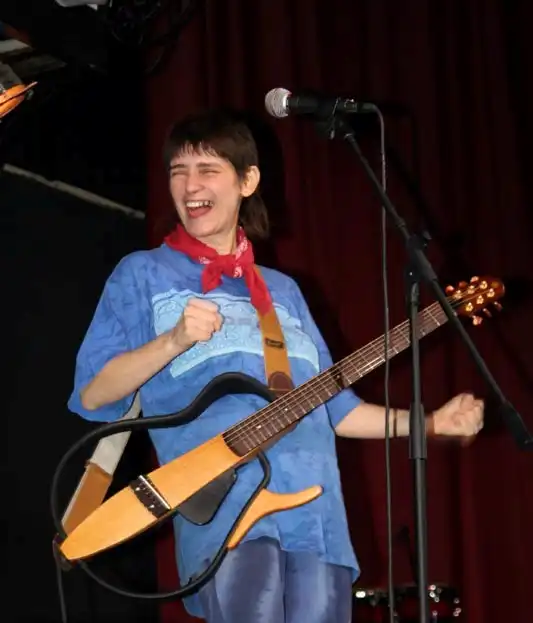 Часто спрашивают, когда я начала сочинять песни. Я честно отвечаю, что, наверное, с рождения. Вообще, наверное, виноваты мама с папой, у нас в семье считалось нормальным сочинять песни по случаю и без случая, просто от хорошего настроения, и петь их друзьям и знакомым. Кое-что пробовала кропать еще в школьном возрасте, подражая любимым Высоцкому или Окуджаве, но, услышав западный рок, заткнулась: любая музыка, кроме этой, для меня исчезла, а как сочетать такую музыку с русскими словами, было непонятно. На первые опыты такого рода я решилась в 85 году. С одной стороны, стал поднимать голову пресловутый "русский рок", и многое из того, что пелось со сцены, к моему изумлению, оказалось ниже критики. С другой стороны, "низам", то есть собственно хипповой тусовке, к которой меня всегда тянуло, было практически нечего петь. Это же ненормально! И первую песенку в улично-хипповом жанре я сочинила зимой, по дороге с "Яшки", т. е. тусовки у памятника Свердлову, в очередной раз послушав, как люди пытаются петь самодельные опусы. Она была специально очень простая: "Свобода есть, Свобода есть свобода... " (кстати, перифраз известного лаконичного стишка И. Холина). Уцепилась за эту веревочку и стала в очередной раз выкарабкиваться из цивильной жизни.