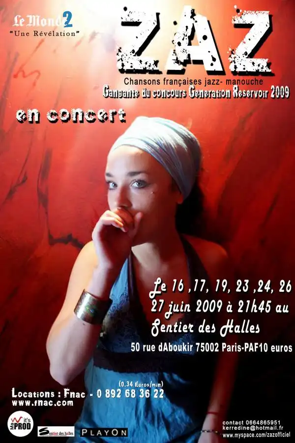 В январе 2009 года ZAZ выигрывает финал третьего выпуска конкурса Le Tremplin Génération France Bleu/Réservoir, который прошел в Париже, в концертном зале «Олимпия». Отмечали, что после такого успеха «ZAZ увидела как открылись перед ней двери студий для записи первого альбома» и победительница «получит 5 тысяч евро на раскрутку, а также возможность снять клип для MTV и записать свой альбом». Однако ZAZ пришлось ждать еще 14 месяцев до того, как вышел её первый альбом. В апреле 2009 года она снова гастролирует в России: на этот раз от Владивостока через Сибирь до Нижнего Новгорода. В России ZAZ исполняет песни Пиаф, Бреля, Азнавура, Генсбура, Матьё, Дассена, Каас, а также песни с её будущего альбома: «Je veux», «Les passants», «Prends garde à ta langue». Затем она совершает гастрольную поездку в Египет в сопровождении танцовщицы. В течение месяца она с латиноамериканской группой играет испанскую и французскую музыку в Касабланке, в ресторане «Попугай». Кроме того, летом 2009 года ZAZ принимает участие в Fuji Rock Festival в Японии. Затем она продолжает петь на улицах Монмартра.