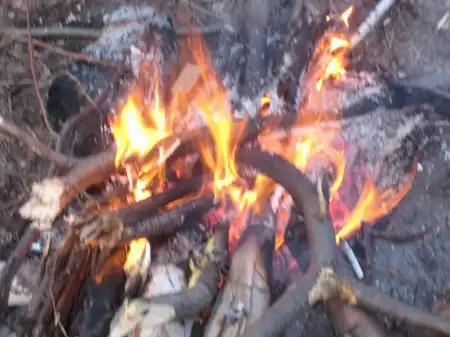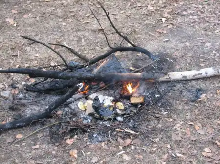 Особо практичные стали думать, где бы развести костер. Видимо, мы пришли на место не так давно принимавшее других гостей. Свидетельством этому был гостеприимно оставленный, но еще тлеющий костерок.