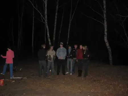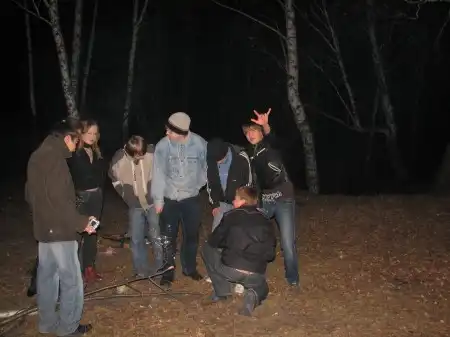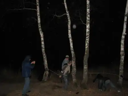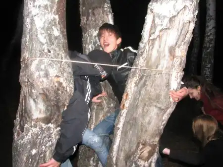 Пока пара человек ушла в магазин за продовольствием, остальные добывали дровишки для огня. Ну кто-то, конечно, бездельничал.. :)