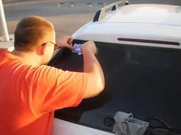 Приезжают первые желающие и сразу же на месте клеят "отличительный" знак